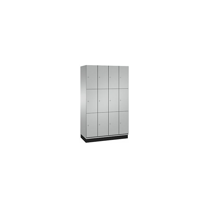Armadietto a scomparti CAMBIO con porte in lamiera d'acciaio, 12 scomparti larghi 1200 mm, corpo alluminio brillante / anta alluminio brillante, altezza scomparti 616,6 mm. Fornitura = montato. Altezza = 1950 mm. Profondità = 525 mm. Larghezza = 1200 mm. Colore corpo = alluminio brillante RAL 9006. Colore porta = alluminio brillante RAL 9006. Serratura = serratura a cilindro differenziata. Numero scomparti in larghezza = 4 pz. Numero scomparti = 12 pz. Larghezza scomparti = 300 mm. Materiale = lamiera d'acciaio. Altezza armadietto = 1950 mm. Dotazione interna = senza dotazione interna. Larghezza interna = 262 mm. Altezza interna = 562 mm. Profondità interna = 480 mm. Tipo di porta = anta in lamiera piena. Numero chiavi = 2 pz. Altezza scomparti = 616.6 mm. Larghezza ripiani = 300 mm. Profondità ripiani = 525 mm. Altezza zoccolo = 100 mm. Struttura = con saldatura. Superficie = verniciatura. Struttura in acciaio di lunga durata con ante a battente in acciaio. Cerniere in