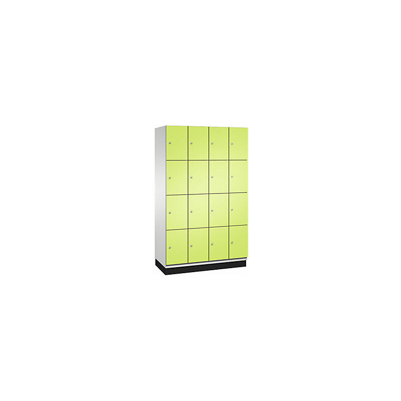 Armadietto a scomparti CAMBIO con porte in lamiera d'acciaio, 16 scomparti larghi 1200 mm, corpo grigio chiaro / anta verdino. Fornitura = montato. Altezza = 1950 mm. Profondità = 525 mm. Larghezza = 1200 mm. Colore corpo = grigio chiaro RAL 7035. Colore porta = verde azzurrognolo RDS 1108060. Serratura = serratura a cilindro differenziata. Numero scomparti in larghezza = 4 pz. Numero scomparti = 16 pz. Larghezza scomparti = 300 mm. Materiale = lamiera d'acciaio. Altezza armadietto = 1950 mm. Dotazione interna = senza dotazione interna. Larghezza interna = 262 mm. Altezza interna = 412 mm. Profondità interna = 480 mm. Tipo di porta = anta in lamiera piena. Numero chiavi = 2 pz. Altezza scomparti = 462.5 mm. Larghezza ripiani = 300 mm. Profondità ripiani = 525 mm. Altezza zoccolo = 100 mm. Struttura = con saldatura. Superficie = verniciatura. Struttura in acciaio di lunga durata con ante a battente in acciaio. Cerniere in alluminio/plastica. Finecorsa di apertura a 90°. Materiale corpo