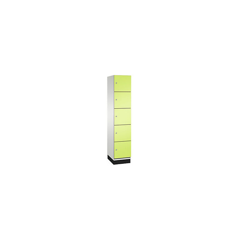Armadietto a scomparti CAMBIO con porte in lamiera d'acciaio, 5 scomparti larghi 400 mm, corpo grigio chiaro / anta verdino. Fornitura = montato. Altezza = 1950 mm. Profondità = 525 mm. Larghezza = 400 mm. Colore corpo = grigio chiaro RAL 7035. Colore porta = verde azzurrognolo RDS 1108060. Serratura = serratura a cilindro differenziata. Numero scomparti in larghezza = 1 pz. Numero scomparti = 5 pz. Larghezza scomparti = 400 mm. Materiale = lamiera d'acciaio. Altezza armadietto = 1950 mm. Dotazione interna = senza dotazione interna. Larghezza interna = 362 mm. Altezza interna = 322 mm. Profondità interna = 480 mm. Tipo di porta = anta in lamiera piena. Numero chiavi = 2 pz. Altezza scomparti = 370 mm. Larghezza ripiani = 400 mm. Profondità ripiani = 525 mm. Altezza zoccolo = 100 mm. Struttura = con saldatura. Superficie = verniciatura. Struttura in acciaio di lunga durata con ante a battente in acciaio. Cerniere in alluminio/plastica. Finecorsa di apertura a 90°. Materiale corpo e anta