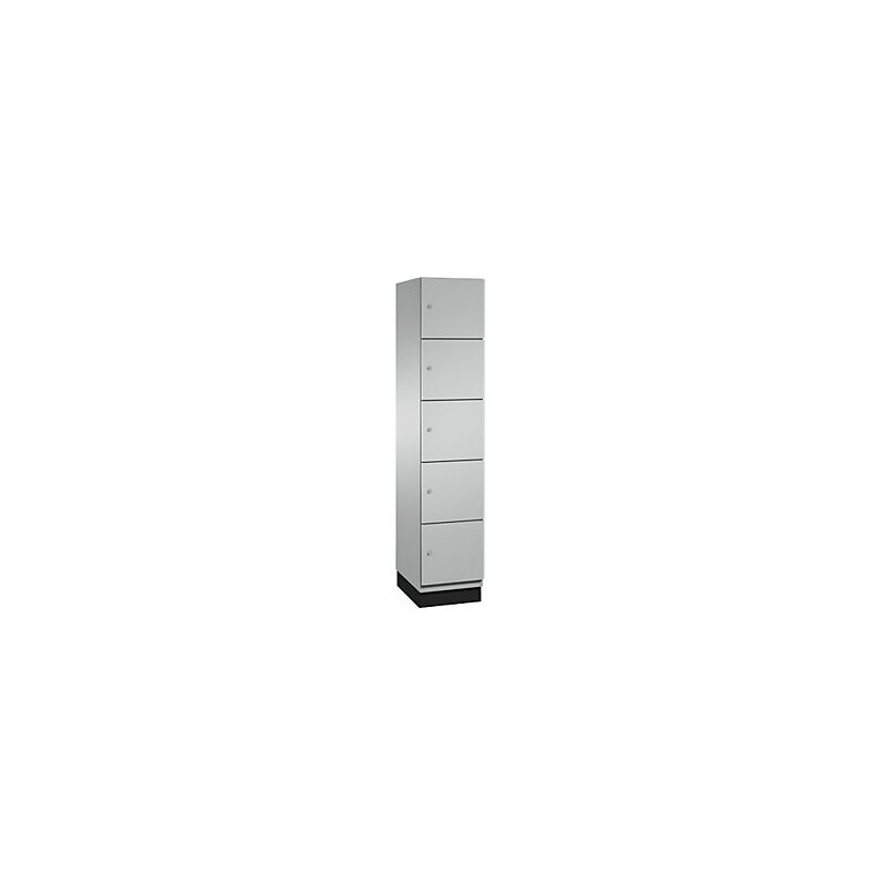 Armadietto a scomparti CAMBIO con porte in lamiera d'acciaio, 5 scomparti larghi 400 mm, corpo alluminio brillante / anta alluminio brillante. Fornitura = montato. Altezza = 1950 mm. Profondità = 525 mm. Larghezza = 400 mm. Colore corpo = alluminio brillante RAL 9006. Colore porta = alluminio brillante RAL 9006. Serratura = serratura a cilindro differenziata. Numero scomparti in larghezza = 1 pz. Numero scomparti = 5 pz. Larghezza scomparti = 400 mm. Materiale = lamiera d'acciaio. Altezza armadietto = 1950 mm. Dotazione interna = senza dotazione interna. Larghezza interna = 362 mm. Altezza interna = 322 mm. Profondità interna = 480 mm. Tipo di porta = anta in lamiera piena. Numero chiavi = 2 pz. Altezza scomparti = 370 mm. Larghezza ripiani = 400 mm. Profondità ripiani = 525 mm. Altezza zoccolo = 100 mm. Struttura = con saldatura. Superficie = verniciatura. Struttura in acciaio di lunga durata con ante a battente in acciaio. Cerniere in alluminio/plastica. Finecorsa di apertura a 90°.