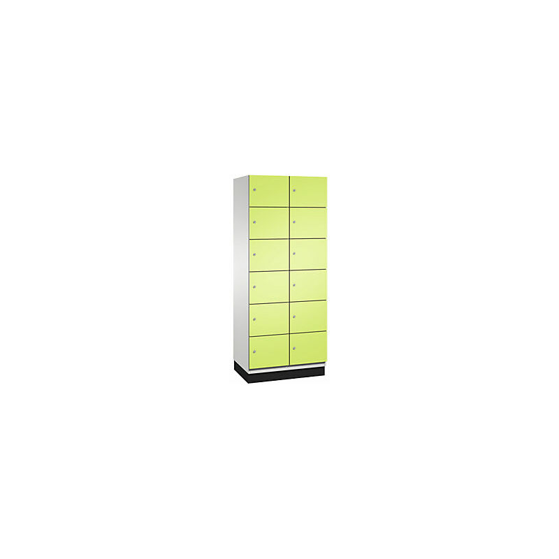 Armadietto a scomparti CAMBIO con porte in lamiera d'acciaio, 12 scomparti larghi 800 mm, corpo grigio chiaro / anta verdino. Fornitura = montato. Altezza = 1950 mm. Profondità = 525 mm. Larghezza = 800 mm. Colore corpo = grigio chiaro RAL 7035. Colore porta = verde azzurrognolo RDS 1108060. Serratura = serratura a cilindro differenziata. Numero scomparti in larghezza = 2 pz. Numero scomparti = 12 pz. Larghezza scomparti = 400 mm. Materiale = lamiera d'acciaio. Altezza armadietto = 1950 mm. Dotazione interna = senza dotazione interna. Larghezza interna = 362 mm. Altezza interna = 262 mm. Profondità interna = 480 mm. Tipo di porta = anta in lamiera piena. Numero chiavi = 2 pz. Altezza scomparti = 308.3 mm. Larghezza ripiani = 400 mm. Profondità ripiani = 525 mm. Altezza zoccolo = 100 mm. Struttura = con saldatura. Superficie = verniciatura. Struttura in acciaio di lunga durata con ante a battente in acciaio. Cerniere in alluminio/plastica. Finecorsa di apertura a 90°. Materiale corpo e