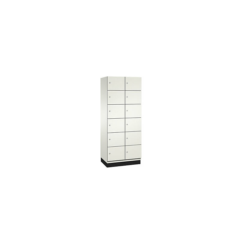 Armadietto a scomparti CAMBIO con porte in lamiera d'acciaio, 12 scomparti larghi 800 mm, corpo bianco puro / anta bianco puro. Fornitura = montato. Altezza = 1950 mm. Profondità = 525 mm. Larghezza = 800 mm. Colore corpo = bianco puro RAL 9010. Colore porta = bianco puro RAL 9010. Serratura = serratura a cilindro differenziata. Numero scomparti in larghezza = 2 pz. Numero scomparti = 12 pz. Larghezza scomparti = 400 mm. Materiale = lamiera d'acciaio. Altezza armadietto = 1950 mm. Dotazione interna = senza dotazione interna. Larghezza interna = 362 mm. Altezza interna = 262 mm. Profondità interna = 480 mm. Tipo di porta = anta in lamiera piena. Numero chiavi = 2 pz. Altezza scomparti = 308.3 mm. Larghezza ripiani = 400 mm. Profondità ripiani = 525 mm. Altezza zoccolo = 100 mm. Struttura = con saldatura. Superficie = verniciatura. Struttura in acciaio di lunga durata con ante a battente in acciaio. Cerniere in alluminio/plastica. Finecorsa di apertura a 90°. Materiale corpo e anta