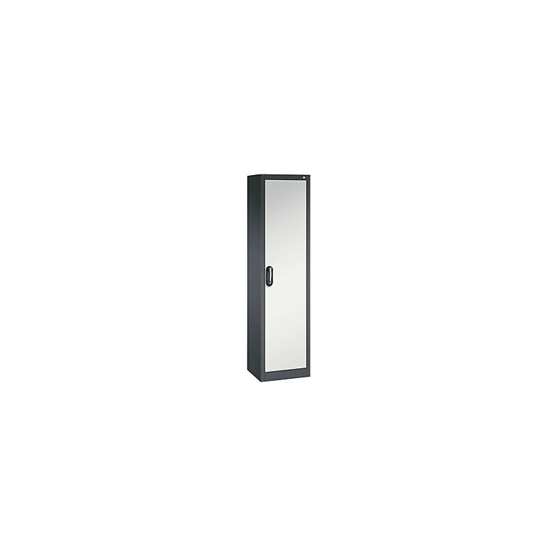 Armadio universale ACURADO, largh. x prof. 500 x 400 mm, grigio nerastro / grigio chiaro. Fornitura = montato. Larghezza = 500 mm. Altezza = 1950 mm. Profondità = 400 mm. Colore corpo = grigio nerastro RAL 7021. Materiale = acciaio, con verniciatura a forno. Tipo di prodotto = armadi con ante a battente. Tipo di porta = anta a battente. Colore porta = grigio chiaro RAL 7035. Numero ante = 1 pz. Numero ripiani = 4 pz. Materiale ripiani = lamiera d'acciaio. Colore ripiani = grigio chiaro RAL 7035. Portata per ripiano = 70 kg. Caratteristiche = con serratura. Serratura = Ergo-Lock, serratura a cilindro, con triplo chiavistello. Numero file raccoglitori = 5 pz. Dotazione interna = 4 ripiani. Passo di regolazione altezza ripiani = 15 mm. Altezza zoccolo = 100 mm. Angolo di apertura delle porte = 110 °. Spessore ripiani = 24 mm. Spessore del corpo = 0.88 mm. Spessore porta = 25 mm. Spessore parete posteriore = 0.75 mm. Robusta struttura in acciaio di lunga durata, corpo verniciato a fuoco.