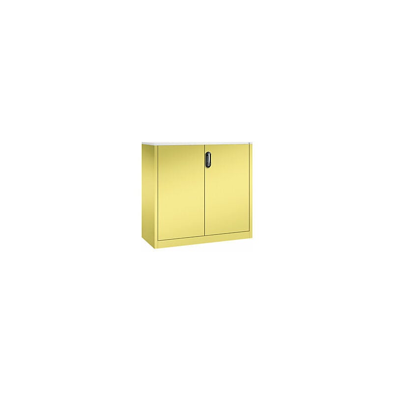 ACURADO mobiletto archivio, 3 file di raccoglitori, alt. x largh. x prof. 1200 x 1200 x 500 mm, giallo zolfo / giallo zolfo. Fornitura = montato. Larghezza = 1200 mm. Altezza = 1200 mm. Profondità = 500 mm. Colore corpo = giallo zolfo RDS 0959059. Materiale = acciaio. Tipo di prodotto = armadi con ante a battente. Tipo di porta = anta a battente. Colore porta = giallo zolfo RDS 0959059. Numero ante = 2 pz. Numero ripiani = 2 pz. Materiale ripiani = lamiera d'acciaio. Colore ripiani = grigio chiaro RAL 7035. Portata per ripiano = 70 kg. Caratteristiche = con serratura. Serratura = Ergo-Lock, serratura a cilindro, con triplo chiavistello. Numero file raccoglitori = 3 pz. Dotazione interna = 2 ripiani. Passo di regolazione altezza ripiani = 15 mm. Altezza zoccolo = 100 mm. Angolo di apertura delle porte = 110 °. Spessore ripiani = 24 mm. Spessore del corpo = 0.88 mm. Spessore porta = 25 mm. Spessore parete posteriore = 0.75 mm. Struttura in acciaio di lunga durata. Capacità di carico 70
