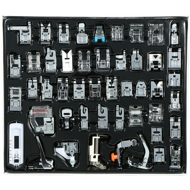 Kit di 48 piedini per macchine da cucire professionali per la maggior parte delle macchine da cucire multifunzionali domestiche con sistema a gambo basso. Può soddisfare le diverse esigenze del piedino premistoffa. Specifiche: Materiale: plastica + metallo Quantità: 48 Contenuto: 1 * piedino guida punto 1 * piedino universale 1 * Piedino per punta aperta 1 * Piedino per cerniere 1 * Piedino per bottoni a pressione /> 1 * Piedino in plastica per cerniera invisibile 1 * (A9) Piedino per applicazioni < br/>1 * Piedino per perline tonde 1 * Cerniera piccola< br /> 1 * Piedino per cucire 1 * Piedino per punto raso 1 * Rotolo di 6 mm di piedino per cucire piedino per pizzi 1 * Piedino per zig zag 1 * Piedino per ricamo punta aperta 1 * Piedino per ampia apertura 1 * Piedino per cordoncino 1 * Piedino per cordoncino br/> />1 * 1/4''' piedino trapuntato 1 * piedino intrecciato 1 * piedino premistoffa < br/>1 * piedino premistoffa standard 1 * piedino per punto diritto 1 * piedino da 1/4'' per