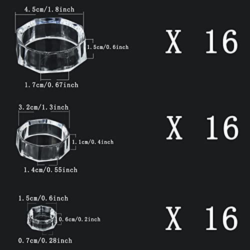 La confezione include: 48 espositori rotondi in plastica (ogni dimensione ha 16), le dimensioni piccole sono di circa 1,5 x 0,6 cm, le dimensioni medie sono di circa 3,2 x 1,1 cm (profondità x altezza), le dimensioni grandi sono di circa 4,5 x 1,5 cm. 1,8 cm/1,8x 0,6 pollici (profondità x altezza)