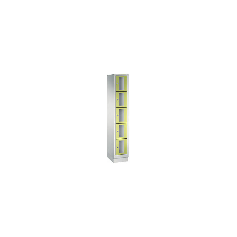 Armadietto a scomparti CLASSIC, altezza scomparti 295 mm, con zoccolino, 5 scomparti larghi 320 mm, anta verdino. Fornitura = montato. Altezza = 1800 mm. Profondità = 500 mm. Larghezza = 320 mm. Colore corpo = grigio chiaro RAL 7035. Colore porta = verde azzurrognolo RDS 1108060. Serratura = serratura a cilindro differenziata. Numero scomparti in larghezza = 1 pz. Numero scomparti = 5 pz. Larghezza scomparti = 300 mm. Materiale = lamiera d'acciaio. Altezza armadietto = 1800 mm. Dotazione interna = senza dotazione interna. Larghezza interna = 230 mm. Altezza interna = 295 mm. Profondità interna = 465 mm. Tipo di porta = anta a battente. Numero chiavi = 2 pz. Altezza scomparti = 340 mm. Larghezza ripiani = 320 mm. Profondità ripiani = 500 mm. Altezza zoccolo = 100 mm. Struttura = con saldatura. Superficie = verniciatura. Struttura in acciaio di lunga durata. Finestrella in vetro acrilico spessa 3 mm. Visibilità diretta. Verniciatura a forno di qualità per elevata resistenza ai raggi UV e