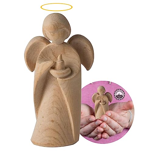 4betterdays.com Classico angelo custode in legno di pino cembro con candela - Artigianato in Alto Adige - Odore di cembro/altezza 9 cm/battesimo regalo per ragazze/angelo custode bambini