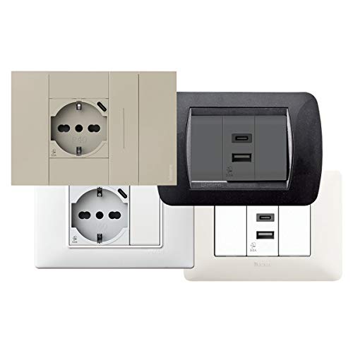 4Box, P40 USB 3.0, Presa Schuko con USB-C, Compatibile con Bticino LivingNow, Bianca