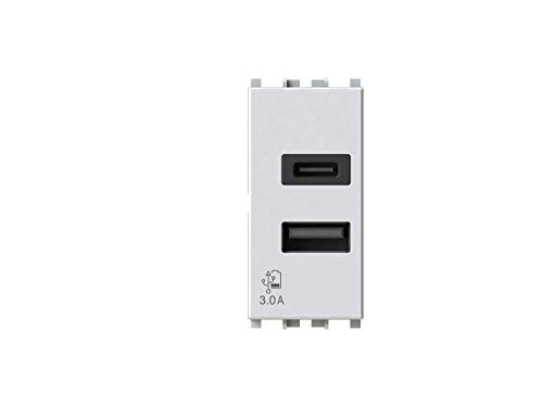 4box USB3.0 - Alimentatore USB da 3 Ampere a 2 uscite su modulo singolo con connettore di tipo A e tipo C compatibile con Vimar Plana bianca