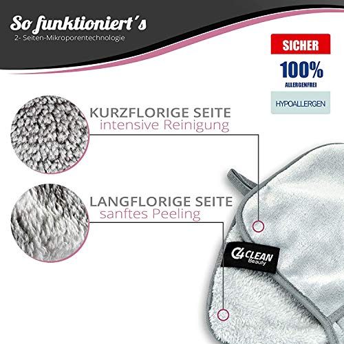 4Clean Make Up - Salviette struccanti in microfibra, lavabili, 2 pezzi, guanto integrato per il trucco in microfibra ipoallergenico (viola)