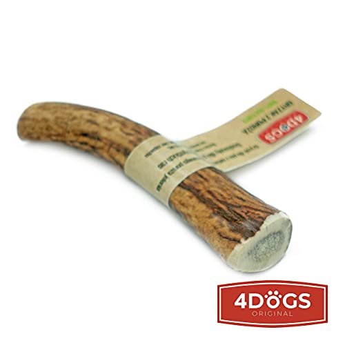 4DOGS ORIGINAL Cane Mastica Corna di Cervo Naturali di Lunga Durata |Giocattoli da masticare per cani| 12 cm di lunghezza|Antlers For Dogs Medium-Ideale per cani di taglia piccola e media(2Kg - 20Kg)