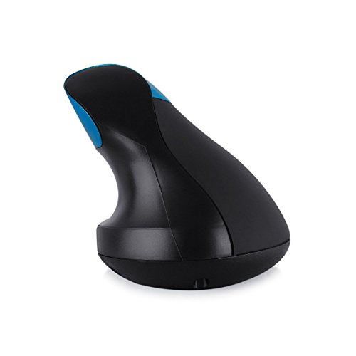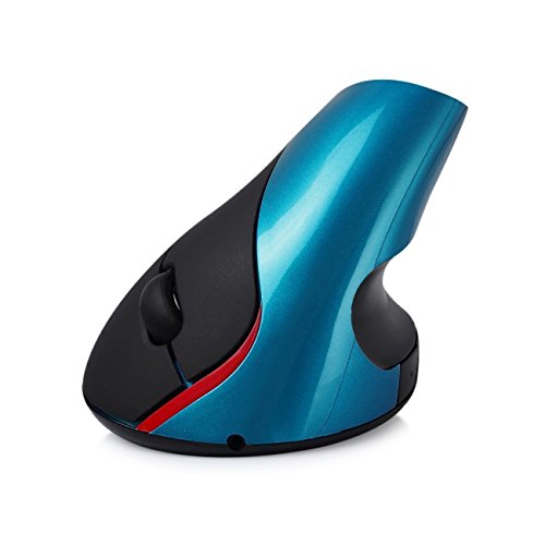 2.4Ghz Wireless verticale ergonomico Mouse ottico 1600dpi ricaricabile Bulit-in metallo Peso curva a destra, blu IN SCATOLA