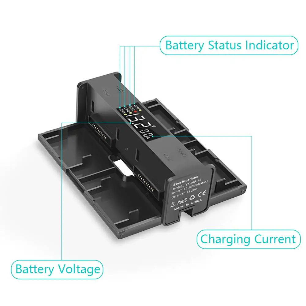 Yx 4in1 Charger Battery for DJI Mavic Air2 Charging Hub Portable Smart Intelligent LED Display Drone Mavic Air 2 Battery Charger