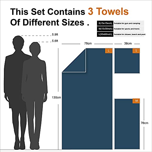 4Monster Asciugamani da palestra in microfibra di 3 dimensioni, ad asciugatura rapida, ultra leggeri, super assorbenti, da spiaggia, campeggio, palestra, spiaggia, nuoto, escursionismo (blu navy)