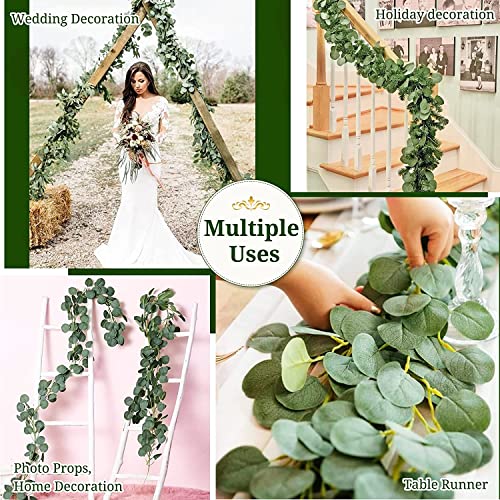 4Pack Ghirlanda di eucalipto artificiale, 6Ft Foglie di eucalipto di seta finta verde Ghirlanda sospese Runner da tavola di vite Ghirlanda per sfondo di nozze Decorazione per feste parete ad arco