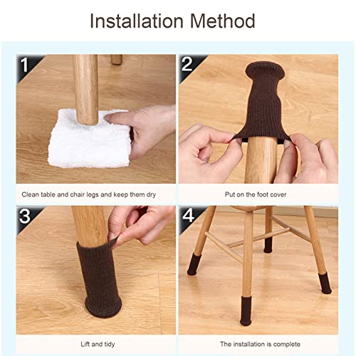 4Pcs Calzini per Gambe per Mobili Coprigambe per Mobili Calzini per Gambe per Mobili Copertine Mute Antiscivolo Protezioni per Pavimenti per Gambe di Sedie Lavorate a Maglia (Marrone scuro)