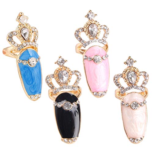 4pcs corona chiodo anello moda unghie anello strass Nail Art decorazione strumenti manicure