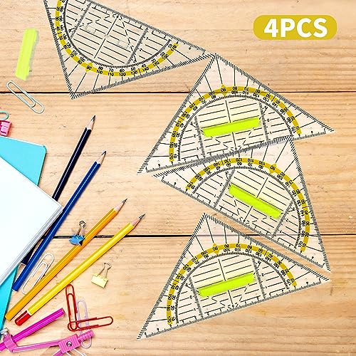 4pcs Goniometro Triangolare in Plastica da 14 cm, Righello Geometrico Triangolare con Fibbia Ausiliaria, Squadra Geometrica in plastica per Studenti, Progettisti, Uffici e altro