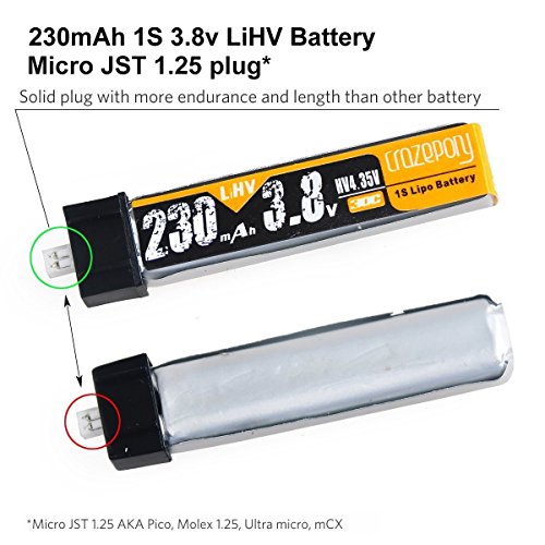 4pcs 1S Lipo Batteria 230mAh HV 30C 3.8V Batterie for Tiny Whoop Blade Inductrix Micro JST 1.25 Connector by Crazepony-UK (1S Lipo Batteria)