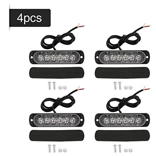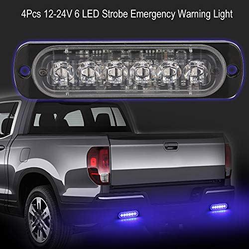 4Pcs 6 LED Luci Stroboscopiche Ambra per Auto Flash Strobe Spia Luminosa di Emergenza Barra Luminosa Lampeggiante(Blu)