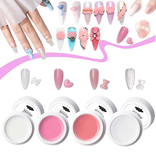 4pcs Nail Extension Builder Gel,15ml Solid Gel Nail Glue,Non-Stick Building Gel For Nail Extension Diy Nail Art Manicure,Premium Color 3d Nail Polish For Nail Art Salon