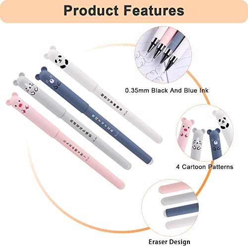 4Pcs Penna a Sfera Cancellabile Nero, Penne a Inchiostro Gel Cancellabili Penna gel Cancellabile a Forma di Animale per Studente Bambino Adulto