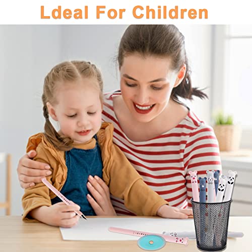 【Set di penne cancellabili】 I cappucci delle penne sono progettati con forme di animali dei cartoni animati come maiale, orso, panda e gatto. Ci sono 4 diversi colori per i cappucci delle penne: bianco, grigio chiaro, grigio scuro e rosa. Diverse forme di cartoni animati e colori diversi a tua scelta. Inchiostri: blu/nero