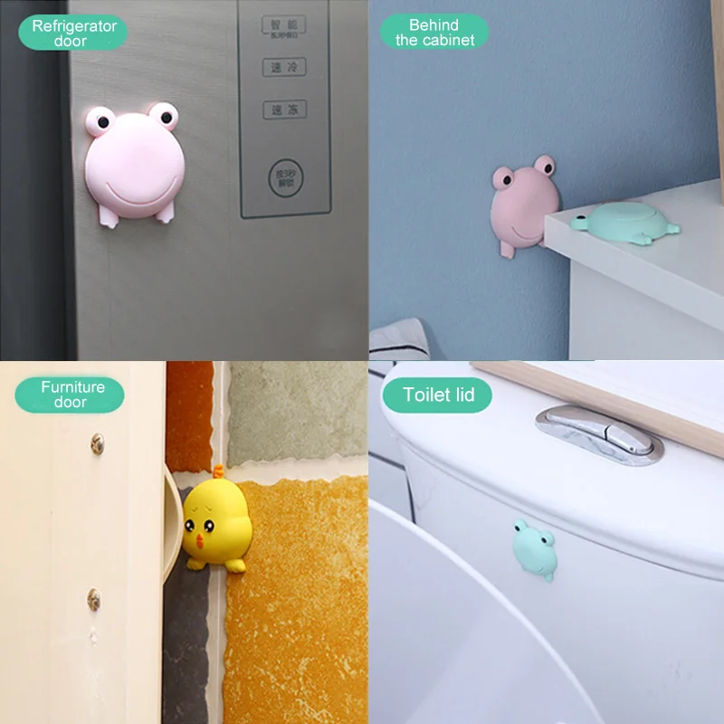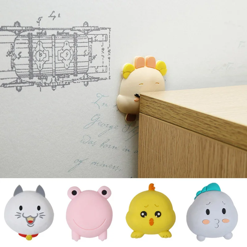 4Pcs Self-adhesive Door Lock Protective Pad Silicone Door Wall Sticker Cute Cartoon Animal Shock Mat Wall Mute Thickening