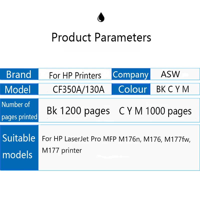 ASW 4Pcs toner cartridge CF350A 350A CF351A CF352A CF353A 130A comptible for hp Color LaserJet Pro MFP M176n M176 M177fw M177