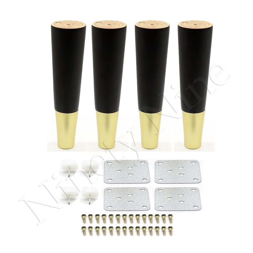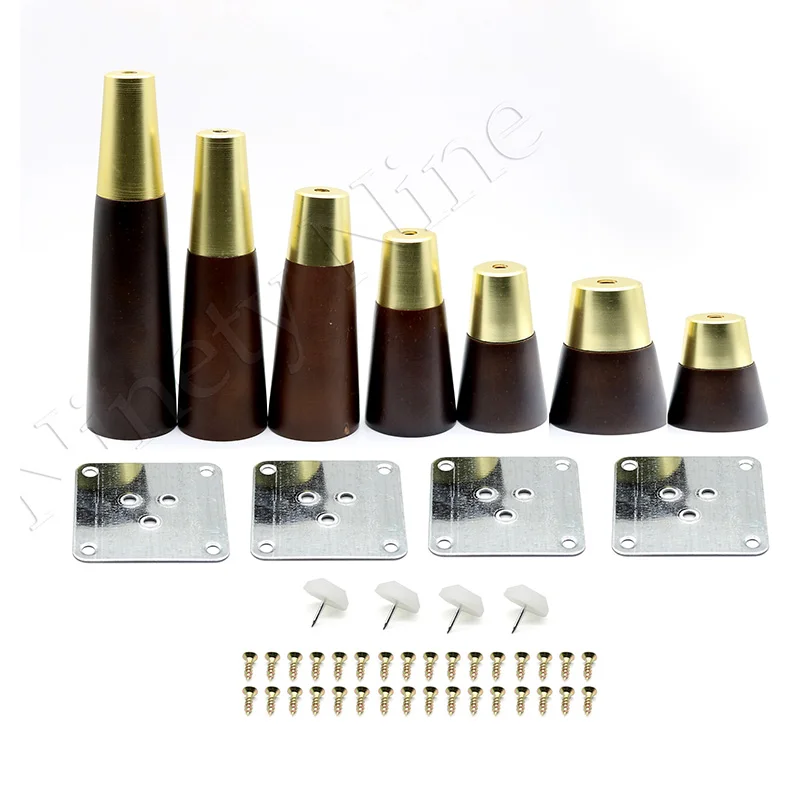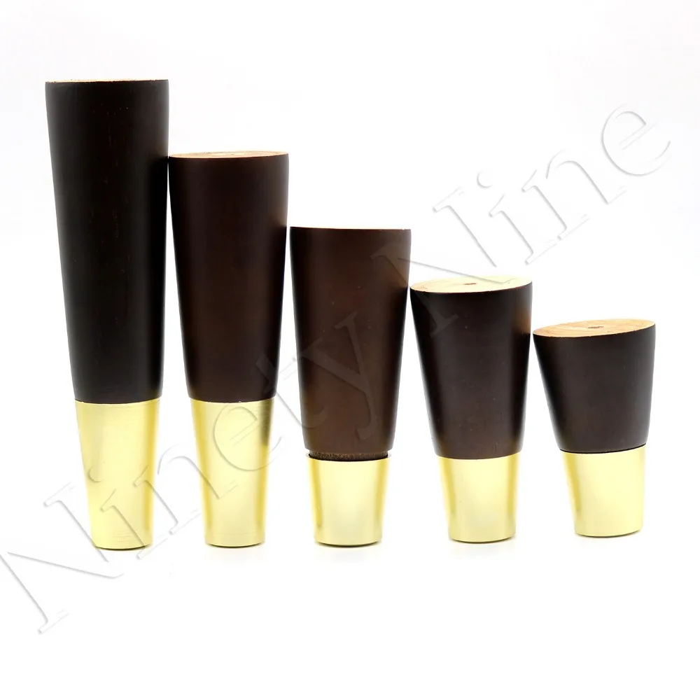 4Pcs Walnut Color Natural Wood Reliable Wood Walnut Furniture Leg Cone Shaped Wooden Feet for Cabinets Soft Table