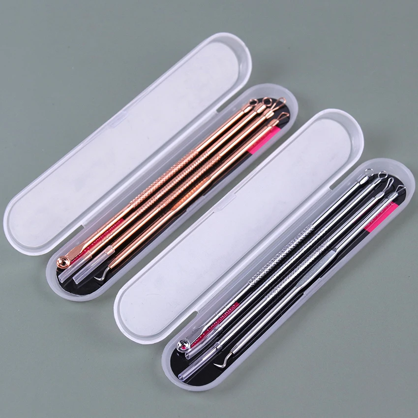 4PCS/Set Blackhead Comedone Acne Pimple Blackhead Remover Tool Spoon For Face Skin Care Tool Needles Facial Pore Cleaner