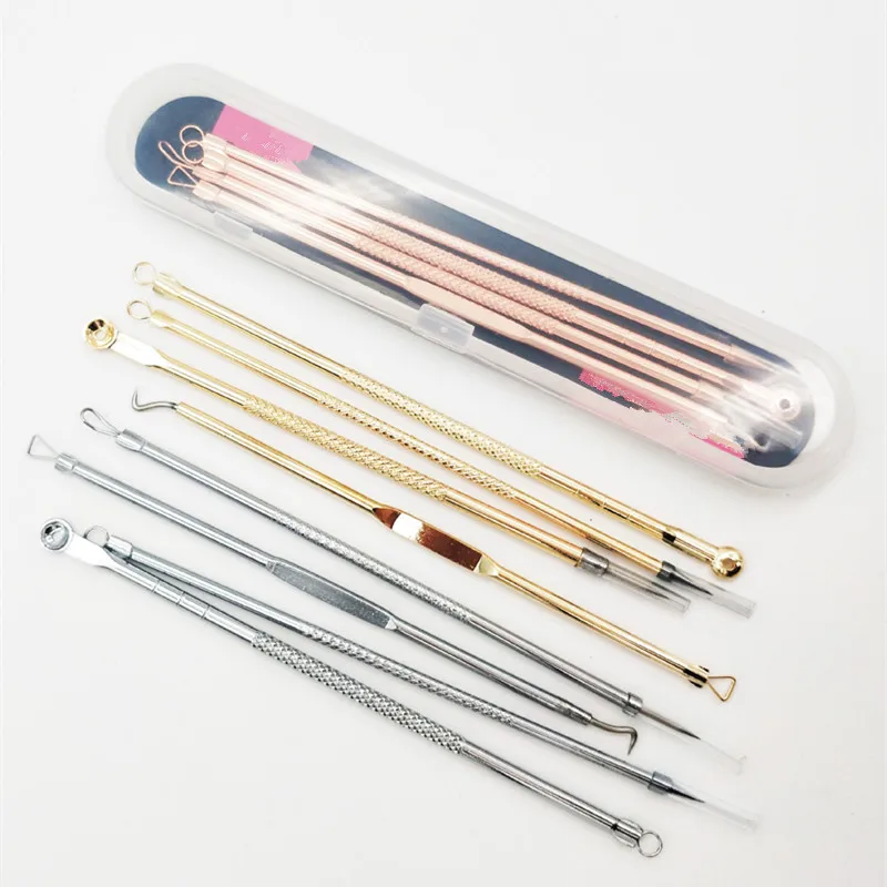 4Pcs/Set Rich Gold Pimple Spot Comedone Extractor Cleanser Acne Blackhead Removal Needles Beauty Face Pore Clean Care Tools