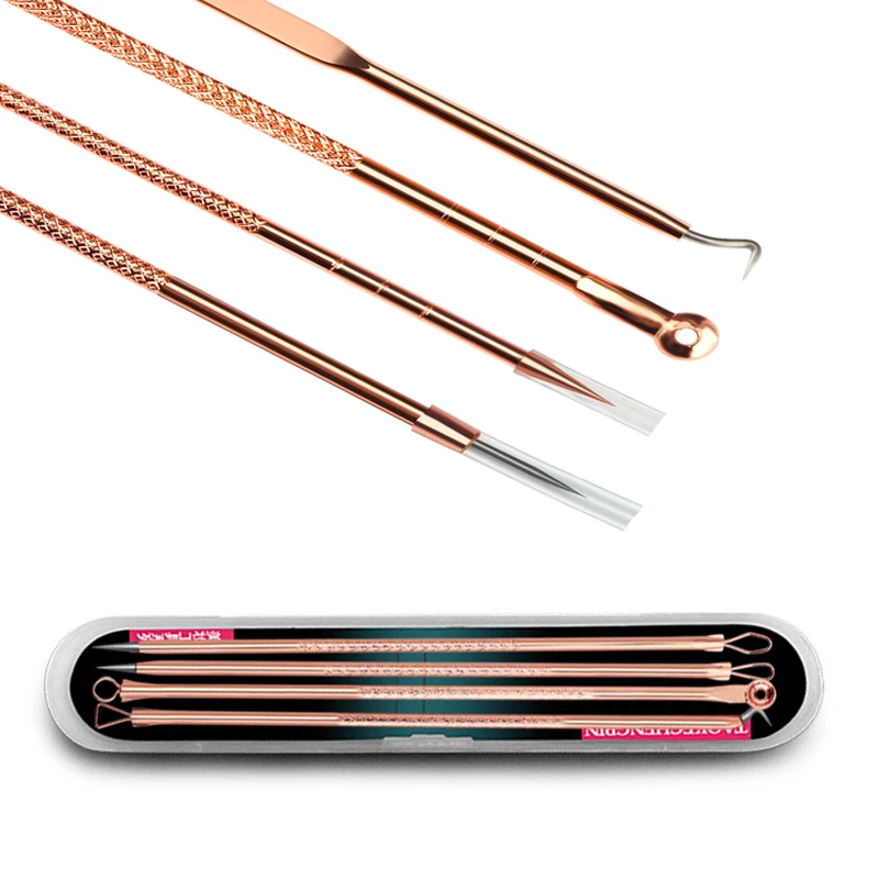 4pcs/set Rose Gold Blackhead Belmish Comedone Acne Pimple Extractor Vacuum Blackhead Remover Tool Spoon for Face Skin Care Tool