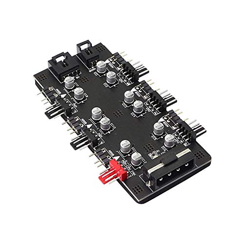 ARGB PWM 2 in 1 mozzo a 6 vie. Fino a 6 set di spine RGB (5 V 3 pin) indirizzabili e connettori PWM (12 V 4 pin) per soddisfare le vostre esigenze di collegamento di più dispositivi. Supporta l'avvio simultaneo di ventole a 6 vie, ARGB è tutto sincronizzato tra tutte le ventole, una impostazione si applica a tutte le ventole (velocità e colore).