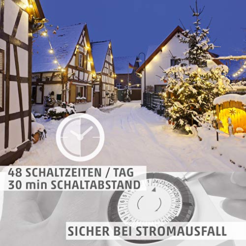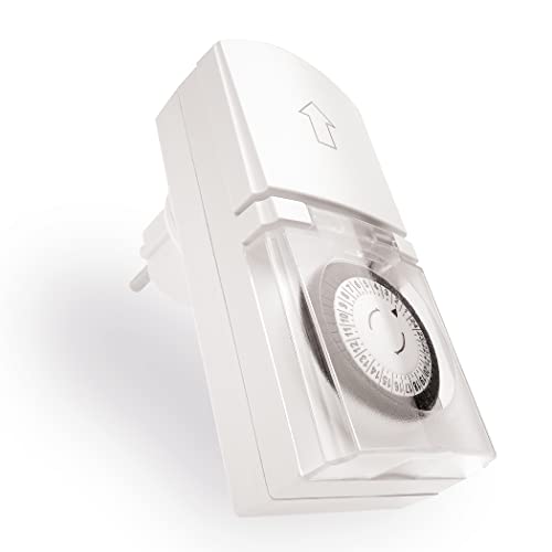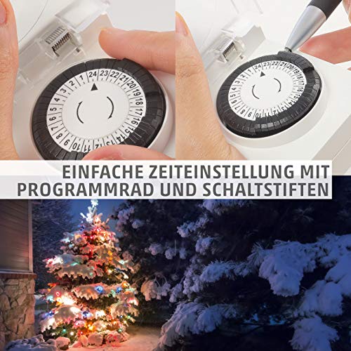 4smile Tempo Timer con presa, per esterni | Timer meccanico con programma giornaliero (24 h) e 48 tempi di commutazione al giorno | per esterni, IP 44 | Protezione per bambini | Colore: grigio/verde