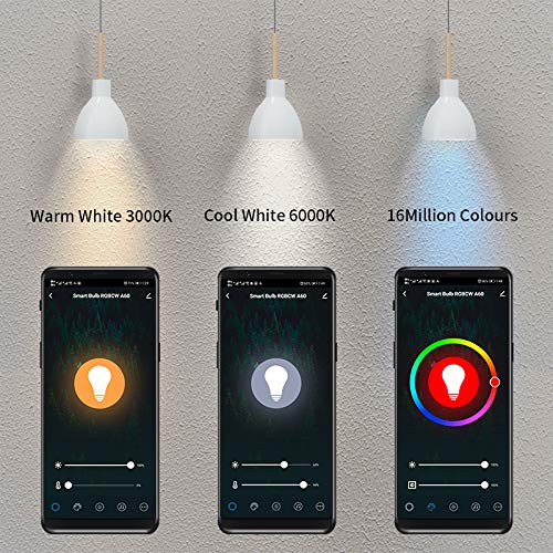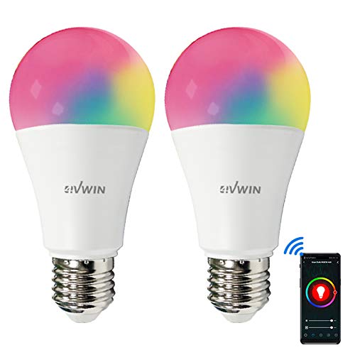 4VWIN WiFi Smart Lampadina A60 RGBCW 800lm Temperatura di colore e multi colore Controlli regolabili con APP Nessun hub richiesto (2, E27)