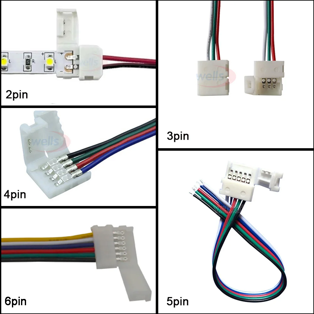 5-100pcs led connector wire 2pin 3pin 4pin 5pin 6pin connector Cable For WS2811 WS2812B 5050 RGB RGBW LED strip Light