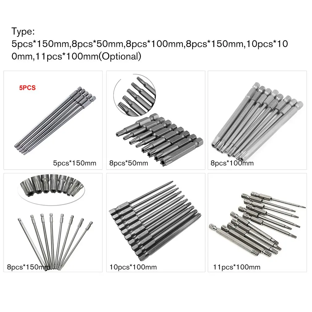5-11PCS Hollow Screwdriver Bit Set 50mm/100mm/150mm Long Alloy Steel Torx Magnetic Screwdriver Bit Driver Tools Kit