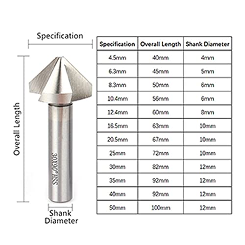 1PC 4.5-50mm Smusso 3 Flauto 90 Gradi HSS Svasatore Smussatura Strumento Punte Da Trapano Smusso Per La Lavorazione Del Legno Punte Da Trapano,1 pezzo 30 mm