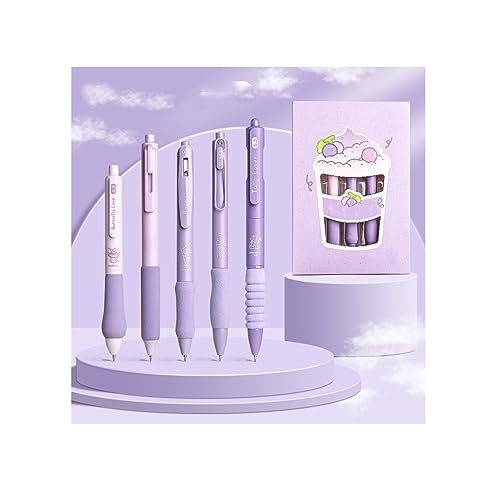 5-Count Gel Pen Set, Retractable Quick Dry Ink Pens, Fine Point 0.5mm Cute Writing Pen, Comes With Three Different Nibs And A Soft Comfortable Grip, With 10 Refills (Color: Purple, Size: 0.5mm)