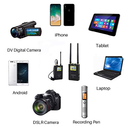 【Lungo Tempo di Lavoro e Distanza di Lavoro】L'orario di lavoro di questo sistema microfonico Lavalier senza fili è fino a 10 ore, e supportare l'alimentazione elettrica esterna, in modo da adattarsi alle varie occasioni. La distanza di lavoro è fino a 328 piedi (in area aperta), ideale per catturare l'audio in una scena di grandi dimensioni