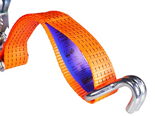 !!! IMPORTANTE!!! Le nostre cinghie sono sicure e approvate ufficialmente per il fissaggio del carico / Conformi alla norma DIN EN 12195-2 / Etichetta con tutte le avvertenze legali sulla cinghia e sul cricchetto della cinghia