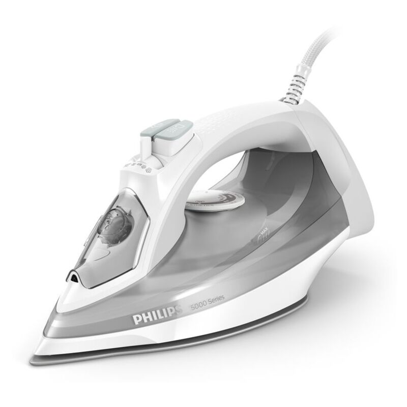 Creato per garantire ottime prestazioni, giorno dopo giorno La piastra SteamGlide Plus dura 4 volte di più* Per risultati ottimali, giorno dopo giorno, hai bisogno di un ferro affidabile. Grazie alla piastra antigraffio SteamGlide Plus, al getto continuo di vapore e alla funzione Calc-Clean integrata, questo ferro da stiro di alta qualità offre prestazioni durature. Philips 5000 series DST5010/10 Ferro da stiro. Tipo: Ferro a vapore, Materiale piastra: SteamGlide Plus, Lunghezza cavo: 2 m. Potenza ferro: 2400 W. Larghezza: 332 mm, Profondità: 137 mm, Altezza: 167 mm Caratteristiche Tipo Ferro a vapore Materiale piastra SteamGlide Plus Spegnimento automatico No Autopulizia No Colore del prodotto Grigio, Bianco Funzione colpo vapore Sì Vapore continuo Sì Vapore continuo 40 g/min Capacità tanica acqua 0,32 L Appoggio posteriore stabile Sì Funzione anti-gocciolamento Sì Vapore regolabile Sì Sistema anti-incrostazione Sì Funzione vapore verticale Sì Funzione spray Sì Lunghezza cavo 2 m Può