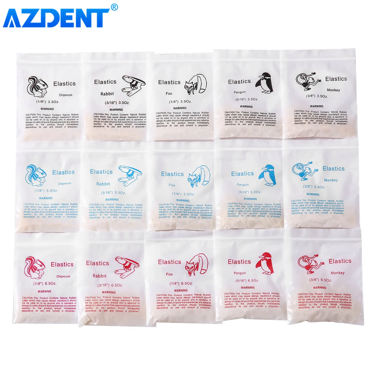 5000pcs/Box AZDENT Dental Orthodontic Zoo Pack Elastics Oral Rubber Bands Braces Elastics Rings 3.5OZ 5.0OZ 6.5OZ