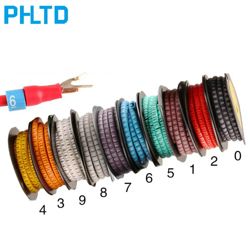 500PCS color EC-0 digital line number tube 0 to 9 for cable marking PVC material number tube label sleeve