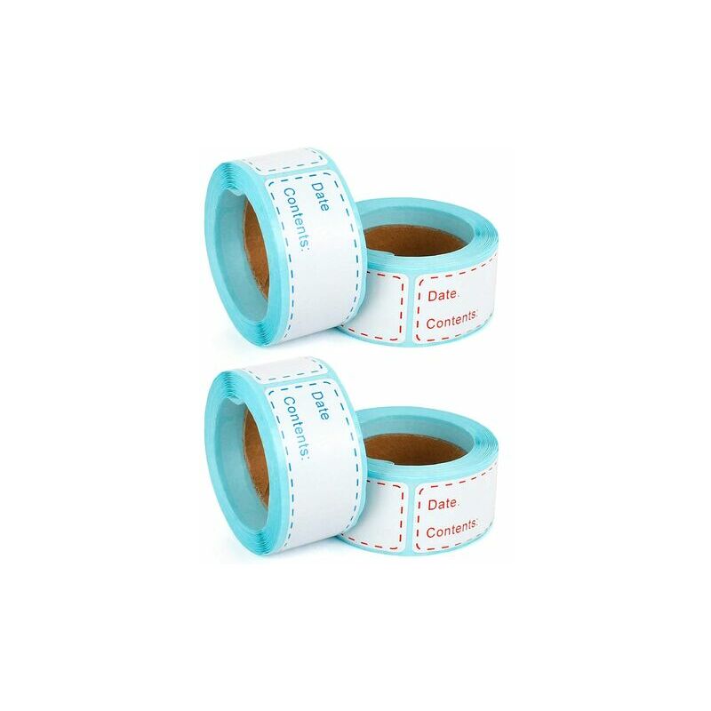 Descrizione del prodotto: Caratteristiche: Facile da usare: Devi solo staccare le etichette adesive da cucina, quindi incollarle sulla superficie del contenitore e infine premere delicatamente le etichette della data del congelatore con la mano. Ampiamente usato: Le etichette adesive stampabili possono essere utilizzate non solo in famiglia, ma anche in altre situazioni. Come ristoranti, supermercati, negozi di alimentari, mercati, uffici, ecc. Specifica: Quantità: 500 PZ Materiale: carta Colore: blu e rosso Peso totale: 180g Dimensione confezione: 15*15*3,5 cm Dimensioni del prodotto: 7,5*2,5 cm La confezione include: 4 rotoli di etichette per congelatore, incluse 500 etichette adesive per cucina
