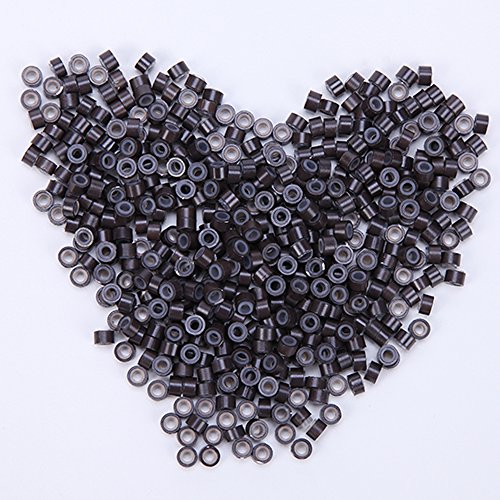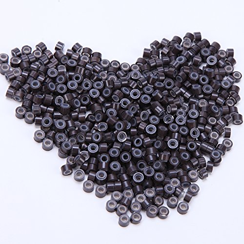 500PCS Microring per Extension Capelli Silicone Anellini 5mm Anelli da Extensions Cheratina I-Tip Micro Ring Kit Accessori di Capelli - Marrone Scuro