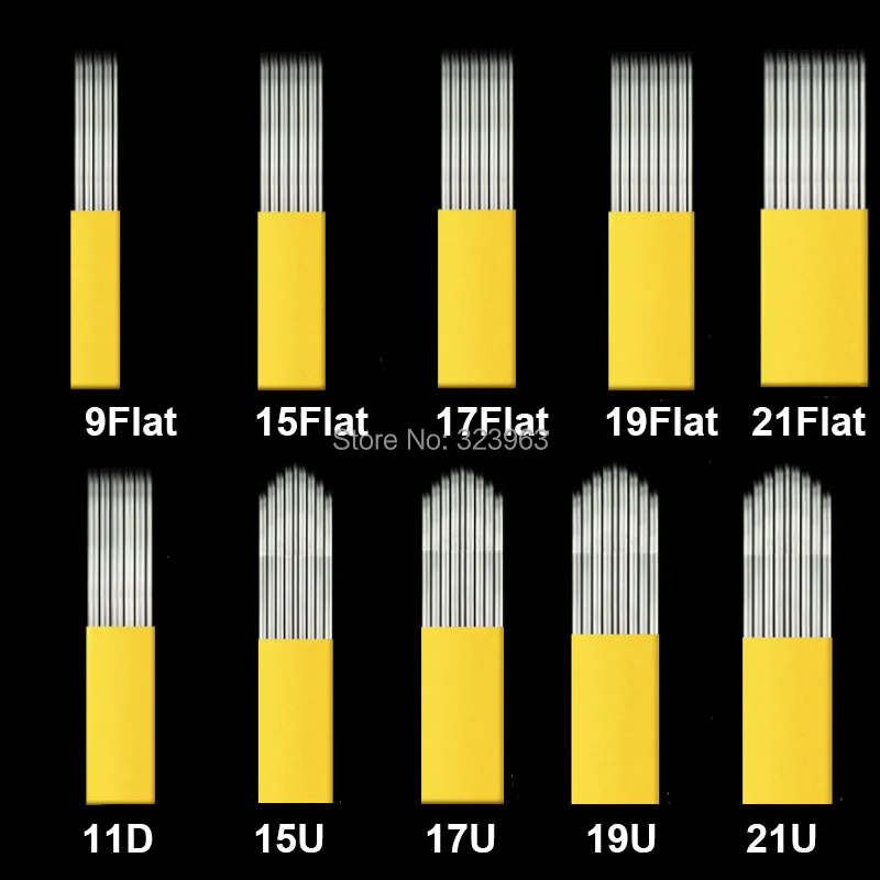 500pcs Permanent Makeup Mixing Double Row 9/15/17/19/21 Pin Microblading Needle Lamina Tebori Tattoo Needles U Blade Eyebrow Lip