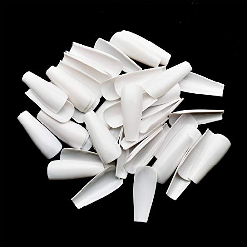 500PCS Unghie finte ballerina Chiodi artificiali a bara lunga Chiodi acrilici per la decalcomania di arte del chiodo Punte per unghie a copertura totale 10 dimensioni Unghie finte bianche